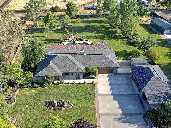 This beautiful home on 2 park-like acres is like living in your own private resort. The 2252 sf home has 3 bedrooms and 2 bathrooms, with potential for a 4th bedroom. The kitchen has hickory cabinets, solid surface counters and stainless steel appliances. There is a breakfast nook and formal dining room. The large great room has a vaulted ceiling. A sunroom/family room overlooks the in-ground pool with a waterfall, plus a covered patio and built in BBQ for all those fun gatherings. There is 220 wiring off the patio. A man cave with a wet bar, mini refrigerator, and icemaker will please everyone. The master bedroom has a walk-in closet. A sliding barn door separates the bedroom and luxurious spa-like bathroom with a huge shower with Marazzi glazed porcelain tile, double sinks, and quartz counter top. The laundry room has a washer and dryer that stay with the home. The attached two car garage has a painted floor, pull down storage, and many cabinets that stay. The front shop is 24x36; insulated and finished, with two air conditioners, many built in cabinets, plus 220 wiring and a car lift. The 16x24 carport provides additional covered parking. The back shop is 22x58; insulated and finished. No worries when the power goes out the Generac generator will take over. The home has an alarm system and a solar system that will even heat the pool. This property allows two large animals.