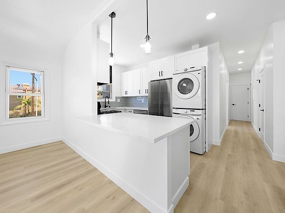 Enjoy quartz counter tops and stainless steel appliances in the kitchen, gorgeous bathroom, plank flooring throughout, air-conditioning, washer/Dryer(in unit), street parking with convenient freeway access and much, much more (photos are of similar unit).