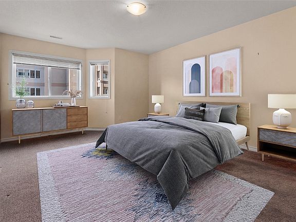 AVAILABLE FOR IMMEDIATE OCCUPANCY. FOURTH floor SW unit in MAYFAIR Towers! This condo has a fantastic floor plan with 2 bedrooms, 2 bathrooms and 1088sqft. The open design has access to the patio and incredible mountain views. The spacious primary bedroom features two closets and an ensuite bathroom with a bathtub and shower. The carpets and the faucets were replaced four years ago. The combo hot water tank/ AC unit, the washer and dryer were all replaced three and half years ago. There is a good sized guest bedroom and a full guest bathroom. You will enjoy a covered South West facing deck and a quiet steel and concrete building. The unit comes with a storage locker and an underground parking space. Located just a walk across the street to shopping at Cherry Lane Mall! All measurements are approximate.