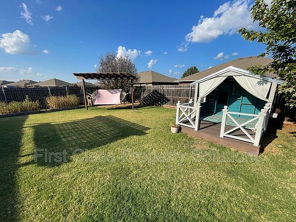 Play houseFenced backyardDual master sinksTile flooringDecorative landscapingWood flooringLarge walk in closets