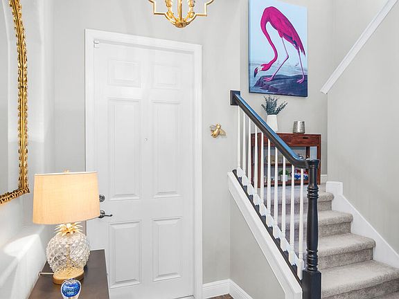 Situated on a premium lot overlooking a serene community park and charming pergola, this beautifully upgraded home in the desirable Arrivas Village community offers a lifestyle of comfort, convenience, and exceptional outdoor living. Located just moments from The Avenue Viera, you'll enjoy easy access to top restaurants, boutique shopping, and entertainment. Built with over $40,000 in upgrades, this 3-bedroom, 3.5-bath home is designed for seamless indoor-outdoor living. French doors from both the great room and the first-floor owner's suite open to one of the largest private courtyards in the community - a true outdoor oasis. The courtyard has been fully paved and transformed with a cabana bar, summer kitchen, beach area with space for a fire pit, and plenty of room to relax or entertain under the sun. Inside, the kitchen features crisp white upgraded cabinetry, quartz countertops, a 5-burner gas range, and a spacious counter-height peninsula perfect for gatherings. Durable wood-look tile flooring runs throughout the main living areas. The owner's suite offers a spa-like ensuite with a beautifully tiled walk-in shower, soaking tub, and a large custom closet. Upstairs, two guest bedrooms - one with a Juliet balcony overlooking the park - are paired with two full baths for privacy and comfort. Enjoy low-maintenance living - the HOA takes care of all lawn maintenance and exterior painting- plus access to a variety of community amenities including a resort-style pool, playground, and dog park. Additional features include a barrel tile roof, impact windows on the front and second floor, hurricane shutters, new plantation shutters, and upgraded lighting, fans, and plumbing fixtures throughout. This home offers the perfect blend of relaxed elegance, outdoor living, and convenience in one of Viera's most vibrant and walkable neighborhoods.