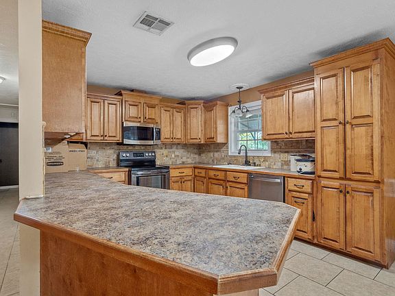 Country charm meets practical living on this spacious 1.52-acre property surrounded by beautiful mature trees. This 3-bedroom, 2-bath home features neutral tile flooring throughout and a welcoming kitchen with custom wood cabinetry, tile backsplash, breakfast bar, and stainless appliances. French doors open to a peaceful, shaded backyard — perfect for relaxing or entertaining. A true standout is the dedicated outdoor meat processing room, fully equipped with a walk-in cooler, sink, hot water heater, and mini-split A/C & heat — ideal for hunters, homesteaders, or anyone needing a cooled workshop. Other highlights include a covered carport, plenty of parking for boats or equipment, and a quiet Carlyss location just minutes to Sulphur’s schools, shopping, and dining.