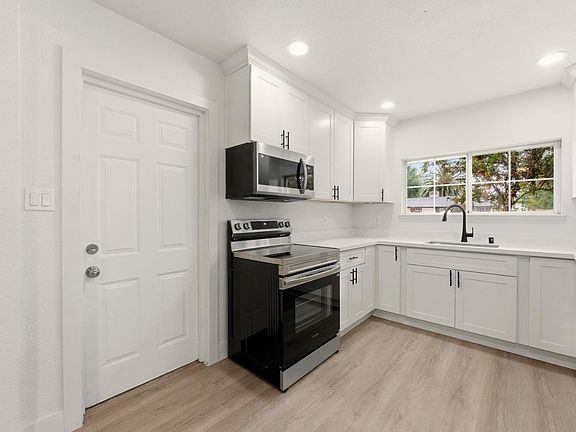 Welcome to this beautiful four-bedroom, two-bathroom home set on an expansive lot. Tastefully updated throughout, this home features a modern kitchen with new cabinets, quartz countertops, and stainless steel appliances. Both bathrooms have been fully remodeled with new vanities and showers. Additional upgrades include new laminate flooring, fresh interior paint, and stylish light fixtures. Enjoy year-round comfort with a central HVAC system. Outside, the large backyard offers endless possibilities with plenty of room to play, garden, or entertaining. The massive detached garage/workshop provides ideal space for extra parking, hobbies, or a dream man cave. There will be a new roof too. Don't miss your chance to see this incredible property today, you won't be disappointed!