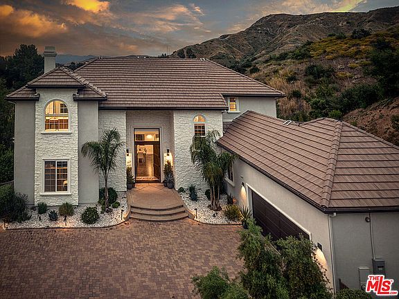 This entertainer's paradise is tucked away offering exquisite privacy and spectacular views of the lake and mountain landscapes of Ladyface, Sugarloaf, and the Santa Monica Mountain range. As soon as you step into this 5-bedroom, 4-bathroom, 3,797 square foot home situated on almost an acre lot, you will be taken aback in awe by the renovations and modern decor. From the sleek mahogany doors to the contemporary stair balusters, every detail was thoughtfully crafted. Unwind at the custom temperature-controlled quartz wine bar and its Miele espresso maker, and start your meal prepping in the gourmet kitchen outfitted with Viking oven/range, center island, with quartz counters and elevated cabinetry. Take in the lake and mountain scenery from the primary retreat's dual walk-in marble shower and two ample secondary bedrooms located upstairs. Downstairs, you'll find another en-suite bed and bath, plus a bonus office/fifth bedroom with panoramic view. Entertain outside with a large in-ground pool and spa, an outdoor kitchen, BBQ, and firepit with heater and TV. Features include dual-zone central heat/air, high-end appliances, and a whole house generator. Members of Malibou Lake Mountain HOA enjoy a plethora of year-round activities, including sailing, boating, fishing and community swimming pool, tennis court and clubhouse. With lake access, this piece of paradise is close to freeways, great schools, and other amenities, but remains private and cozy. Property sells with lake rights, allowing owner to build private dock at lake.