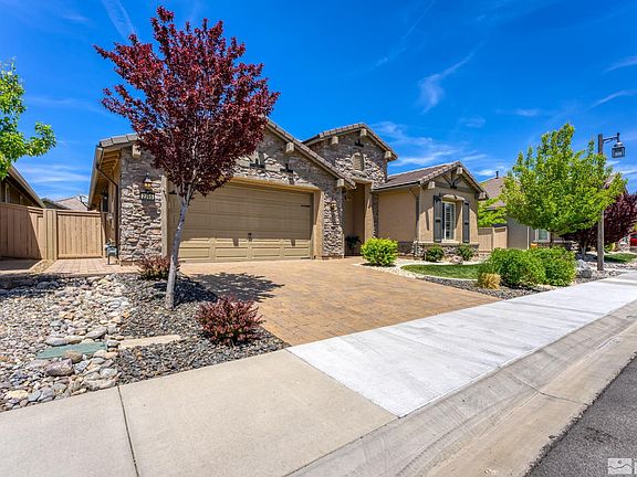 This extensively upgraded home in the 55+ community of Regency at Damonte Ranch is STUNNING! Gorgeous porcelain plank floors flow seamlessly throughout this desirable 1661sf Delamar floorplan. The chefs kitchen features rich cherry-stained cabinetry, SS appliances & a large island w/ quartzite slab & a subway tile backsplash. Open the Western slider to extend the living area onto the large covered paver patio (complete w/ built-in BBQ). The backyard offers tasteful landscaping & an in-ground water feature. With two clubhouses, indoor & outdoor saltwater pools, fitness centers, tennis, pickleball, bocce ball, social clubs & gatherings, plus much more- come see what the Regency lifestyle has to offer!