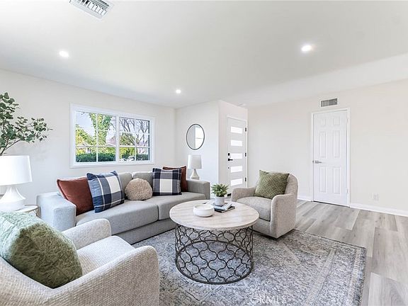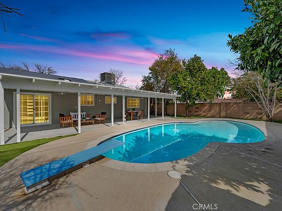 This stunning property in West Hills is a retreat that caters to every aspect of modern living with its thoughtful upgrades and luxurious finishes. The warmth of the new vinyl grey flooring sets the tone for the rest of the home. The living space is brought to life with a beautifully tiled fireplace, featuring grey and white stacked stone, creating a focal point that combines cozy ambiance with sleek design. Walls painted in soothing Swiss coffee tones and white semi-gloss trim add to the home's bright and airy feel, complemented by energy-saving double-pane windows that invite natural light while offering efficiency. The heart of the home, the kitchen, is a masterpiece of design and functionality. New grey shaker cabinets, a striking herringbone backsplash, and gleaming quartz countertops define the space. Equipped with state-of-the-art appliances, including an oven, microwave, refrigerator, dishwasher, stovetop, and hood, the kitchen is a chef's dream. LED lighting highlights the backsplash, while new recessed lighting ensures a well-lit space for culinary creations. Each bedroom is a sanctuary of comfort, featuring new light fixtures, sliding closet doors, and entry doors. The bathrooms are havens of luxury, with new tiles, vanities, LED-lit mirrors, and modern fixtures. The first bathroom boasts a new bathtub with sliding glass doors, while the second offers a glass door for the standing shower, each painted in white semi-gloss for a clean, crisp finish. The conveniences extend beyond the living spaces. A newer air conditioner and heating unit from Costco, installed in 2020, allows for year-round comfort. The laundry room, conveniently located in the hallway, is fully equipped for household needs. The garage, with new drywall, shaker cabinets, and epoxy flooring, mirrors the home's attention to detail. Outside, the property transforms into an entertainer's paradise. The backyard features a large patio with new grey tiles, a custom-built BBQ/bar, and a mesmerizing waterfall feature, set against the backdrop of a newly plastered pool and vibrant artificial grass. New light fixtures create a private oasis, complemented by a variety of fruit trees that promise seasonal delights. The home's exterior is equally impressive, with new grey paint, modern light fixtures, a new mailbox, doorbell, and a roof replaced in January 2023. The addition of paid-off solar panels and a functional tankless water heater speaks to the home's blend of luxury and efficiency.