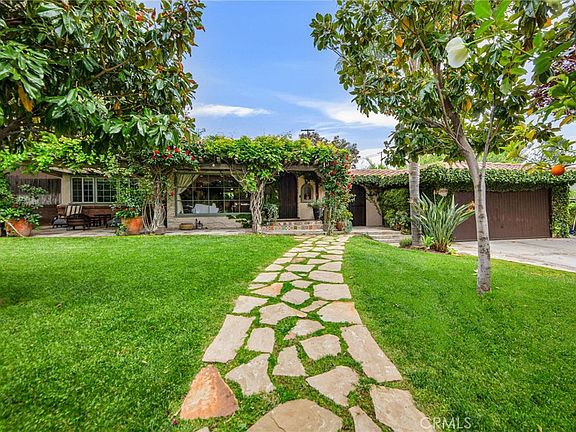 You immediately be impressed with the picture-perfect front yard that radiates charm and curb appeal. Thoughtfully designed with custom landscaping, this lush outdoor space features a vibrant mix of seasonal flowers, manicured shrubs, and mature greenery that create a warm and inviting first impression. Step into timeless elegance with this stunning 3 bedrooms, 3 bathrooms and detached apx 270 Sq. Ft. ‘pool home’ property that perfectly blends classic architecture with luxurious outdoor living. From the moment you step inside, you'll be greeted by a spacious open floor plan that seamlessly connects the living, dining, and kitchen areas—ideal for both entertaining and relaxed family living. Clean lines, high ceilings, and abundant natural light create an airy and cozy indoor atmosphere. Each of the three bedrooms is generously sized, including a luxurious primary suite with a walk-in closet, its own private patio with double doors leading to the resort-like backyard. The private outdoor oasis is designed for relaxation and entertainment, featuring a sparkling pool with a cascading waterfall, a spa, countless patio/sitting areas, built-in BBQ, the built-in pizza oven, fire pit, covered dining space, bar area with a fireplace. Surrounded by lush landscaping, mature palms, and ambient lighting, the backyard feels like your own secluded retreat. This home offers the perfect balance of comfort, charm, and resort-style living—ideal for year-round enjoyment and effortless entertainment.