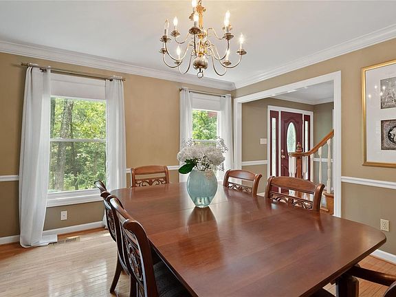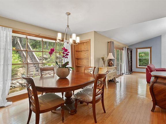 Wooded lot with 2 story cedar home recently stained and over 4225 sq ft of total living area. The home has landscaping, gazebo, waterfall and side entry garage. Come inside to see the refinished hard wood floors (please remove shoes or use provided booties) updated kitchen cabinets and granite counters, updated baths, millwork and much more. Other updates: roof, zoned HVAC, energy efficient windows. The left flank has a large living room plus door leading to half bath, kitchen with waterfall view plus gazebo. The right flank has the dining room, main floor laundry plus family room with fireplace and door leading outside. Upstairs are 4 bedrooms and updated hall and master bathrooms. The lower level recreation area has egress into the large two car garage.
