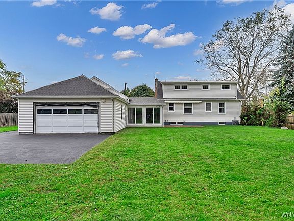 Check out this Unbelievable original owner home. This 4-bedroom, 1-1/2-bath home sits back from the road in a very convenient location close to restaurants, shopping, and the thruways. It is 20 minutes from downtown Buffalo. This very well-taken-care home has 2 bedrooms on each floor, a kitchen/dinette, and a front living room, along with a finished basement for an extra entertaining area. This property has so much to offer with a huge private lot. Huge approx. 55x21 garage with workshop with driveway extension to the rear entrance of the shop. Fully fenced and gated lot for security and privacy. There are so many possibilities for this home for the family looking for a home with a garage for a hobby enthusiast, mechanic, or landscaper. Come with your decorative touch! Showings start immediately, with negotiations starting 10-10-24 at 12 noon.