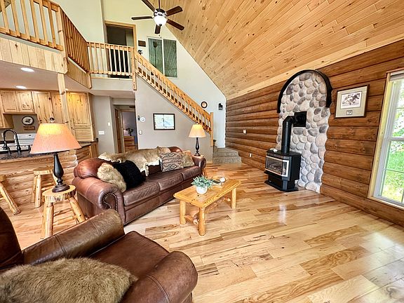 Enjoy breathtaking sunsets on 10th Crow Wing Lake! Less than 2 miles from town, this 1-acre lake home boasts 122.76 feet of gentle elevation sloping towards the lake. This newer construction home features an open concept living area with lakeside wall of windows, 2 free-standing fireplaces, hardwood flooring, cathedral ceiling, main level master suite, main level laundry, attached double garage with LARGE unfinished bonus room above it, unfinished basement & so much more. This gem also includes a separate guest cabin, accessible via the breezeway, with 2 bedrooms, ¾ bathroom, additional living space & is ideal for accommodating visitors or could be used as a private retreat/workspace. 10th Crow Wing Lake is part of the Crow Wing chain of lakes (11 lakes total) that are all connected by the Crow Wing River. Boating with small craft is possible from 10th Crow Wing Lake downstream into 9th & 8th Crow Wing Lakes. This home is being sold in “as-is” condition.