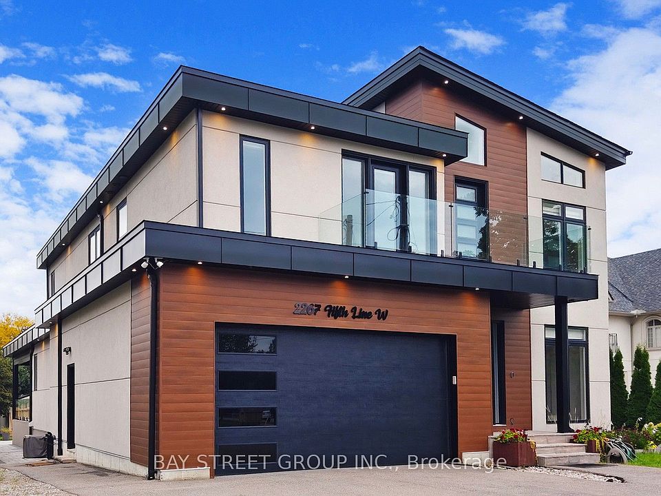 Welcome to 2267 Fifth Line W - a 2022 custom-built modern masterpiece set on a rare 50 200 ft lot in prestigious Sheridan. Designed for today's lifestyle with open, airy spaces, abundant natural light, and a fully legal 2-bedroom basement suite with separate entrance - perfect for multigenerational living or rental income. Boasting 4+2 Bedrooms, 6 Bathrooms, A Double Car Garage, And Over 5,000 Sq.Ft. Of Total Living Space. Extra Deep 200 Feet Lot Featuring Plenty Of Privacy. Legal Basement Suite With Separate Entrance, Separately Metered Hydro And Gas. Grand Foyer With Sleek Glass Railings And A Dedicated Office Ideal For Working From Home. Designer Kitchen Featuring A Large Island, Built-In Premium Appliances, And Walk-Out Access To A Deck For Seamless Indoor-Outdoor Living. Upper Level Features Four Spacious Bedrooms, Loft Area And Walk-Out To A Balcony. Primary Suite Complete With Custom His and Hers Walk-In Closets And A Spa-Inspired 5-Piece Ensuite Bath. Finished Attic Crawl Space Featuring About 350 Sq.Ft. Of Storage Space. Equipped with 2 Furnaces and 2 Air Conditioner to Accommodate the Large Sq Ft . Perfectly Positioned Close To Highly Rated Schools, Lush Parks, Nature Trails, And With Quick Access To Major Highways (Including The QEW). Brand New Fence Installed and 30 amp EV Charger in the Garage. Property is Virtually Staged