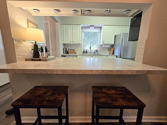 Hot and cold waterBreakfast barFinished lower levelMature pinesOversized two-stall garageUpdated bathLarge walk-in closet