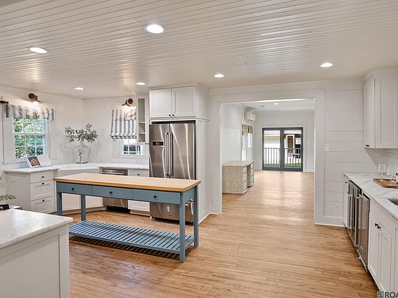 Charming 4 Bedroom, 3.5 Bath Home with Detached Apartment in the Desirable University Gardens Subdivision. This beautifully updated residence offers a perfect blend of modern luxury and timeless charm. Step inside to find a stunning kitchen that features exquisite slab marble countertops and a stylish wall of subway tile backsplash. The centerpiece is a spacious butcher block island and a farm sink, complemented by top-of-the-line stainless steel appliances, including a 36" gas cooktop and a walk-in pantry with a charming barn door. The inviting breakfast area boasts a coffee bar complete with slab marble countertops, an undermount sink, a beverage cooler, and an ice maker, all accentuated by a wall of shiplap. Beautiful wood floors flow throughout the living room, dining room, kitchen, den, and all bedrooms, creating an elegant aesthetic. The private master suite is a true retreat, huge walk-in closet, dual sinks, a jetted tub, and a custom shower. Step outside to an entertainer's paradise with an outdoor kitchen that includes slab granite countertops, a six-burner Viking stove, a built-in refrigerator, and brick flooring—all ideal for hosting gatherings. The separate studio-style detached apartment with full bathroom presents endless possibilities, whether for additional income, guest accommodation, or a home office. Additional highlights include a separate workshop/storage area, and a beautifully landscaped yard. This remarkable home not only offers instant equity but also boasts proximity to LSU, easy access to Interstate 10, and within walking distance to Trader Joe's, Zippies, MagPie, Rock N Sake and scenic lakes. The charming curb appeal, highlighted by a wrought iron gate, sets the stage for what’s inside. Don’t miss this exceptional opportunity—schedule your private showing today and make this gorgeous home yours!