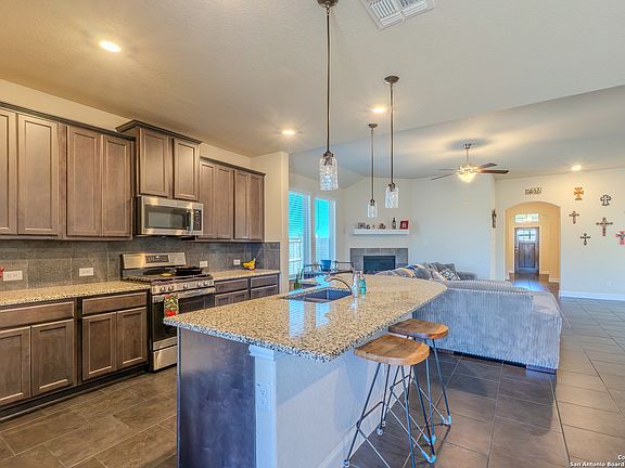 Electric fireplaceGas stoveSpacious open floor planGenerous granite counter spaceExpansive kitchen