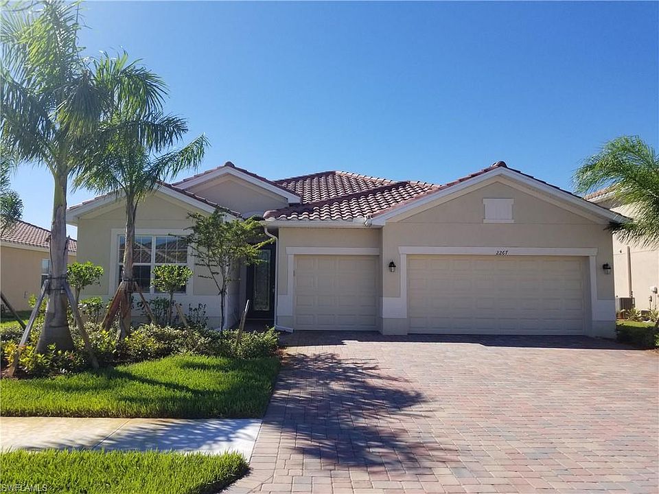 Must see great room floor plan with tile throughout! This one checks all the boxes with a large kitchen and great room for entertaining, 4 bedrooms, 3 baths and a 3 car garage! Inside everything's included from cabinetry to crown molding, blinds, appliances, laundry sink, and more! On a lake must see! Orange Blossom is located in the future of Naples, and has the most incredible return on lifestyle in all of Naples including 2 Resort Pools, 2 Spas, 2 Basketball, 2 Tennis, 2 Playgrounds, Splash Pad, Social Clubhouse, Fitness Center with Kids Play Area, Full Catering Kitchen & Bar, Sand Volleyball, Fishing Pier and more at dues of only $235 per month! Booming area, ground floor opportunity! Listing price includes special builder incentives for end of fiscal year closing and financing requirements. Virtual Tour for Display purposes only.