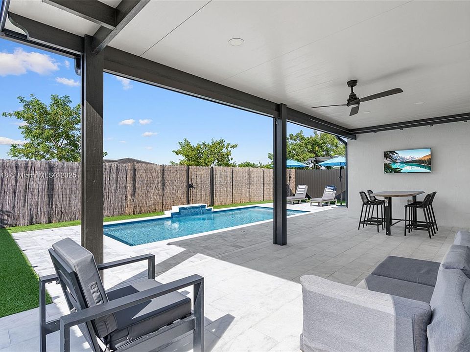 Stunning turn-key Napoli model on a premium lot with a private in-law suite! This beautifully upgraded home sits in a highly sought-after community and includes a full legal suite with its own entrance, kitchen, bath, living room, and bedroom—ideal for guests, multigenerational living, or rental income. The main home features a grand foyer, open-concept layout, and a chef’s kitchen with custom cabinetry, large island, new first-class appliances, and premium finishes. Upgrades include new porcelain tile downstairs, pro-grade laminate upstairs, and a resort-style backyard with a new saltwater pool, electric patio shade, artificial turf, and marble pavers. A new 2022 roof, spacious two-car garage, no rear neighbors, and extra guest parking behind the property complete this exceptional home.