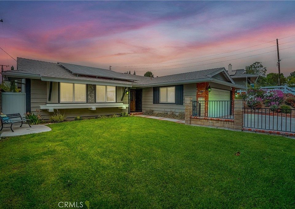 Fall in love with the stunning curb appeal as you approach this picturesque residence. The fence enclosing the expansive front yard creates the perfect space for outdoor play and relaxation. Step inside and be captivated by the open floor plan, seamlessly connecting the cozy fireplace-lit living room, enclosed patio family room, and dining area. The kitchen is a chef's delight, boasting gorgeous granite counters, modern cabinetry, stainless appliances, a wine refrigerator, and a charming garden window. Each bedroom is spacious and flooded with natural light, offering a serene retreat for the whole family. The master suite features a huge walk-in closet, master bathroom, and access to the covered patio and backyard. Outside, the backyard oasis awaits with ample space for BBQs and outdoor dining under the pergola, surrounded by beautifully landscaped beds. Impeccably designed with elegant shutters, tasteful tile flooring, and soothing colored walls, this home exudes comfort and style. Say goodbye to Mello Roos and HOA fees - this is the ideal single-family sanctuary you've been searching for!