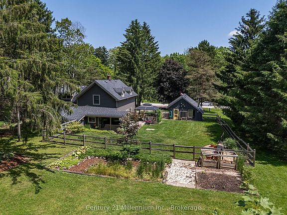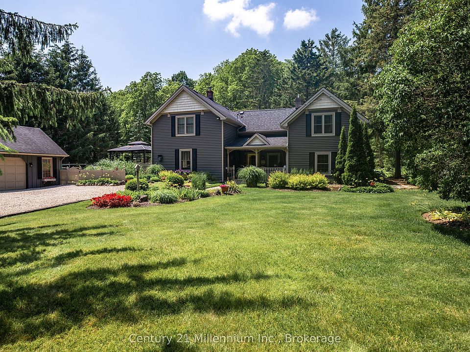 Welcome to one of the best-kept secrets near Owen Sound, where peace, privacy, and convenience meet on a quiet dead-end street. Set on just over an acre of beautifully landscaped land, this property offers a level of serenity that's rarely found this close to town. Mature trees, open greenspace, and established perennial gardens surround you, making it truly an outdoor paradise. Whether it's morning coffee on the covered front porch, a peaceful afternoon in the gazebo, or watching the kids and pets play safely in the fenced side yard, the outdoor lifestyle here is second to none. Inside, the home is warm and welcoming, with a unique layout that offers both privacy and flexibility. There are two separate living areas, each with its own staircase leading to the second floor a great setup for families with children, guests, or those working from home. A central laundry room and powder room sit between the living spaces, making day-to-day life both comfortable and convenient. You'll find four bedrooms, two bathrooms, two gas fireplaces, and a recently updated kitchen that blends modern functionality with timeless charm. A mudroom off the kitchen adds valuable storage and space for a second fridge or freezer. Additional highlights include a detached, insulated 2.5-car garage with a wood stove and a full loft for storage, a 15' x 19' workshop/storage room, central vac, gas dryer, gas BBQ hookup, and hot and cold water taps on the back porch for easy outdoor use. Located in Georgian Bluffs but bordering Owen Sound, you get the best of both worlds: lower property taxes with the perks of city water, transit access, and close proximity to schools, parks, and shopping. Lovingly maintained by the same owners for 49 years, this home offers more than just space, it offers a lifestyle. One visit, and you'll understand why they never wanted to leave.