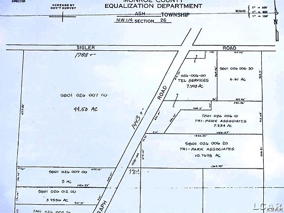Great location in area of heavy trucking,transportation hub. Master planned Multi Use ag/commercial. Telegraph Rd. 275/75 main corridor w/ easy access to all major routes.1 mile north of 275 Exit 2. Rare 1400 +- ft. Telegraph frontage. Level site,excellent boundaries. Corners on Sigler Rd w/1700 ft frontage. 2 miles to New Ford industrial park. New survey. Acreage can be divided, large parcel controls excluding 2.2 acres for house and outbuildings per survey. Currently income producing. Agent is seller.