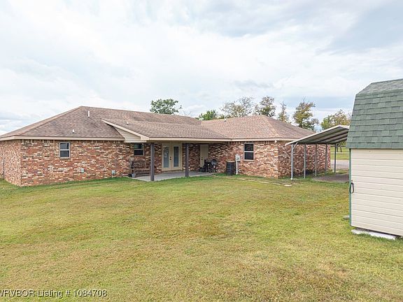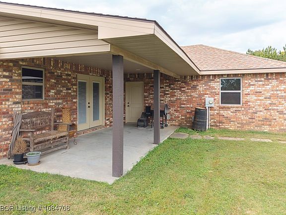 Situated on approximately five park-like acres, this custom-built home, owned by just one family, offers a serene setting as you approach via the driveway, flanked by picturesque mature trees. The residence features two primary bedrooms, a spacious living room, and a large den. Its concrete floors and three-foot doors ensure effortless mobility throughout the space. To enhance energy efficiency, the windows are factory-tinted and equipped with low E glass, complemented by foam insulation. The oversized kitchen boasts an abundance of cabinets and counter space, including four lazy Susans for added convenience. Ample storage options are provided by the impressively spacious closets. The primary bathroom is designed with dual vanities and features two seating areas in the walk-in shower. Additionally, the covered back porch is pre-wired for a hot tub, making it an ideal spot for relaxation. There are three carports, each accommodating two vehicles, totaling six covered parking spaces. Storage building conveys with the home. The seller has chosen to keep this home outside the city limits, located just south of Pocola in the Rock Island community.