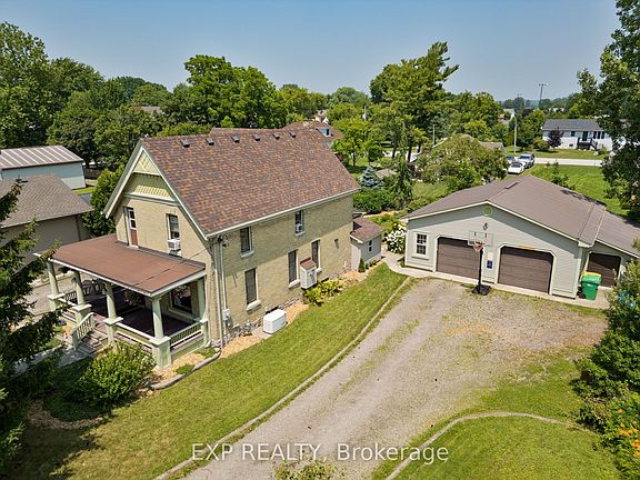 Welcome to Appin ON. This Stunning Historical Home has carried over all the charm from its original design with a lot of add-ons for modern living. Inside the home is 3 Bedrooms and 3 Bathrooms (2 full). Open Concept Kitchen-Dining-Living with a Bonus Room Parlour. Hand crafter solid oak staircase and beautiful stained glass windows. Enjoy cozy diners with the gas fireplace and if you need to get away there are two large shops for hobby enthusiasts. A mechanic, truck driver, trailer storage dream! To the right of the home is a 35x35 Steel roof four car detached shop with radiant natural gas heating and electric A/C for hours of comfort. 100amp panel with 8000 lbs capacity hoist, air compressor, built in shelving, flat screen TV, led lighting, extension cord hose reel, compressor hose reel, hot water tank for sink, secondary electric heater and beautifully poured concrete floors. Attached to this shop is a smaller single door 9x23ft garage with hydro and concrete floor. The entire property is is equipped with over 10 surveillance cameras and sensors for security.The yard is fully fenced. On the other side of the home is another 15x35 shingled roof single car garage with 40 amp panel, hydro, electric fan and heater, insulated, built in cabinets, built in vice and flat screen tv. Enjoy sitting on your wrap around porch with hanging swing. Septic will be pumped prior to closing. Fibre Optics has been brought to the house - Currently Explornet has no issues. Natural Gas out back for BBQ, Generac generator with its own 100 amp panel, Horizontal furnace with humidifier, new sump pump 1 yr. Water heater and water softener both owned. well pump in basement. Roof was shingled 7yrs ago with 40 yr product. 110 plugs installed all around the exterior of the home. Double lot with two driveways. This home is zoned H-C Highway Commercial so be sure to ask your realtor of all the benefits associated with that! Don't miss your chance to enjoy this relaxing lifestyle. Call today!