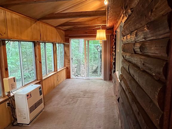 PRIVATE SETTING, 3 BEDROOM 2 BATH, LOG SIDED CABIN IN THE WOODS ON 12.5 ACRES! SELLER OFFERING $6,500 FLOORING/APPLIANCE ALLOWANCE. DETACHED 2 CAR GARAGE - LARGE METAL CARPORT - SHED AND ENCLOSED, 1 CAR QUONSET HUT. ENTER THROUGH THE MUD ROOM AND INTO THE BRIGHT AND LARGE KITCHEN. ROOMY DINING ROOM, LIVING AND GREAT ROOM. BEAUTIFUL WOOD STOVE IN THE LIVING ROOM WITH BRICK CHIMNEY TO THE CEILING WITH SKY LIGHTS ABOVE. PLENTY OF SPACE WITHIN THE HOUSE WITH A LOFT AND ADDITIONAL BEDROOM AND BATHROOM UPSTAIRS. COME AND TAKE A LOOK AT THIS HOUSE WITH LOTS OF PRIVACY, LAND, GREAT CHARM AND COZINESS. LOT HAS THE POTENTIAL FOR 5 ACRE LOT TO BE SUB-DIVIDED