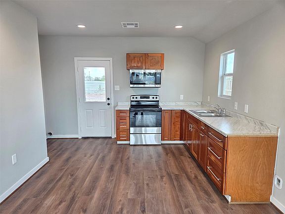 Home features 2 bedrooms and 1 full bathroom. Enjoy stainless steel appliances in kitchen, recessed can lighting, ceiling fans throughout home and a large covered back patio.