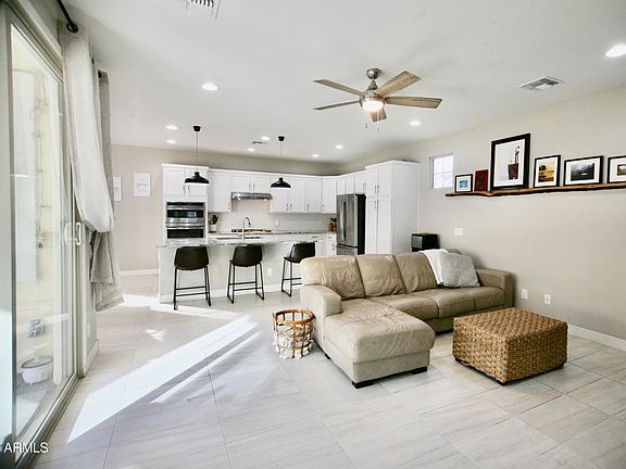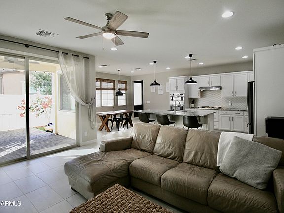 Beautifully upgraded home on a corner lot in the Bungalows at Cooley Station! This floor plan offers an open great room, pocket office, large upstairs loft, 3 bedrooms, & 2.5 baths in 2144 SqFt. The gourmet kitchen features white cabinetry, gorgeous granite countertops, tile backsplash, gas cooktop, stainless appliances, large island with breakfast bar & pendant lighting, and roomy dining area. Sliding doors lead out to a paver patio & low-maintenance fenced yard with artificial turf, community pool, splashpad, several playgrounds &grassy areas! Bedrooms & laundry are upstairs. The spacious master retreat has a private bath with dual sink vanity, additional cabinetry, oversized shower with bench seating & seamless glass. Walk to nearby restaurants, shopping! IDEAL LOCATION!