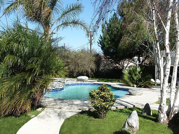 Beautifully remodeled Valley West pool home on Cul-de-sac Street! This home boasts one of the largest lots in the neighborhood- approx. 1/4 acre. You're greeted with a cozy front covered porch. Distressed hardwood flooring in living room, custom porcelain tile in kitchen and bathrooms. IKEA remodeled kitchen includes big country sink, pull-out drawers in pantry cabinet and auto-shut drawers throughout, including newer appliances and custom lighting. Dual pane windows throughout including remodeled bathrooms w/newer fixtures, cabinets, including a spa tub in upstairs guest bath and custom tile shower w/large rain-head shower in master. Master bedroom also offers full walk-in closet, custom lighting and ceiling fans in most bedrooms. The 2 car garage also has a rear pull-through garage door to back patio area for car enthusiasts. Besides large front yard, the huge backyard offers sparkling pool/spa w/water fall, grassy area, gazebo and variety of fruit trees. Steps to park - Minutes to everything!