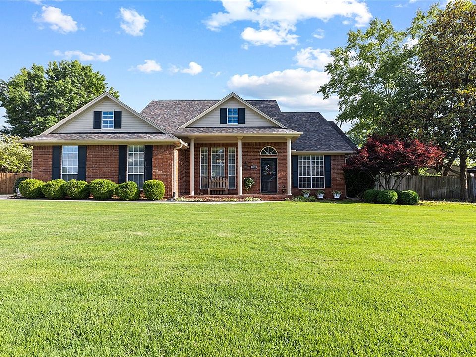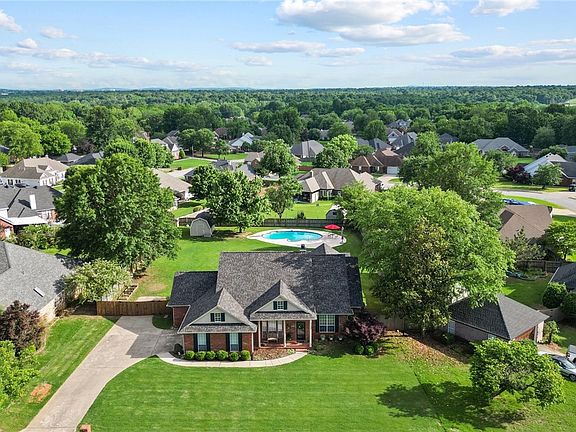 Spend your summer pool-side! This immaculately-cared for home sits on the largest lot in a quiet neighborhood with no thru traffic... literally in the heart of NWA, off Wagon Wheel Rd. Quick access to I-49, the Greenway trails, and J.B. Hunt Park situates it perfectly for busy families on the go. Inside, you'll find 10’ ceilings, graceful crown moulding, ample natural light, and a liveable layout with nicely sized rooms. There's even a split MIL quarters/guest suite, making it a wonderful home for entertaining! In 2022, roofs on home/storage building were replaced, new gutters installed, carpet upgraded plus premium pad, refreshed paint in main areas, and kitchen updates including a new Bosch dishwasher and Frigidaire range. The pool was also refurbished—including new plaster, tile, pump and filter. There are too many recent upgrades to list; see attached Property Highlights supplement. Schedule your private showing, while there are plenty of summer days to enjoy this spectacular property!
