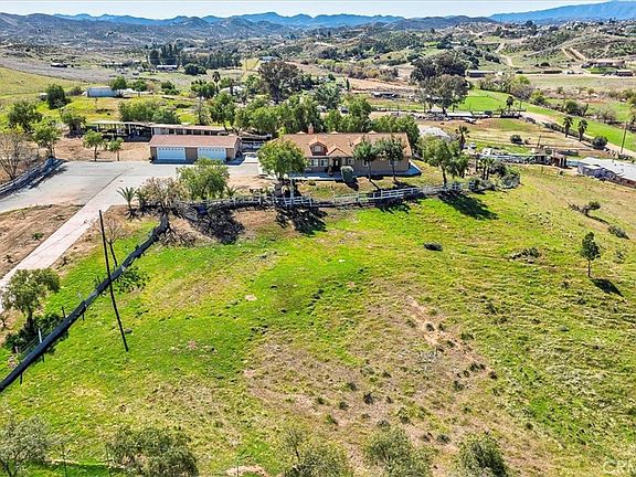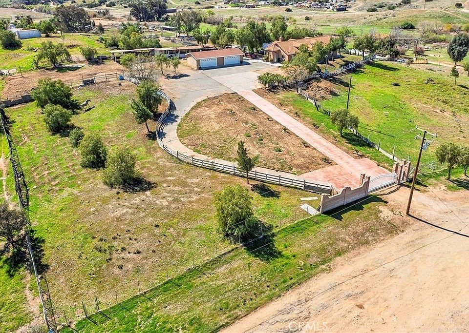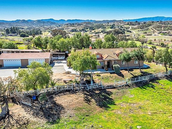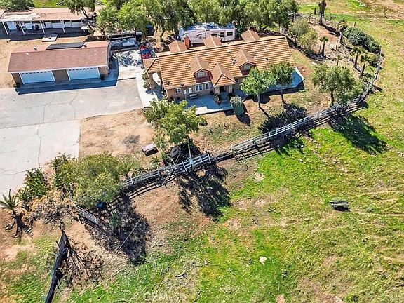 Welcome to Perris in the Good Hope area. This wonderful 4.35 Acre property awaits. Perched on a hill, it offers superb 360 degree views of the local mountain range. Located near the HWY 74 corridor, the location is ideal for anyone looking for a good Ranch property that is centrally located. Current zoning is Rural Residential (Animals are ok). A private entry awaits. Large color stamped concrete driveway will accommodate large trucks with trailers. The home has been tastefully remodeled over the years, and it has a great pride of homeownership. Custom tile floors, upgraded counters in the kitchen and bathrooms. Featuring 4 spacious bedrooms, 2 bathrooms, spacious kitchen and a large family room. The exterior features horse stalls, large parking area, and a detached 4 car garage. This is a corner lot. Custom electronic gate entry awaits. Zoning in this area is flexible for the development of a second unit (please check with Riverside County Planning Department) This are is experiencing lots of growth!! Save on your energy bill with the solar system the home offers. Come by and take a look, you will not be disappointed!