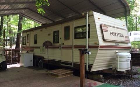 OLDER MODEL "FOXFIRE" BY GULF STREAM 24 FOOT CAMPER WITH ROOF-OVER, DECK AND STORAGE BARN. NICE CAMPING LOT BACKED UP TO COMMON AREA. PROPERTY IS IN AN ESTATE AND BEING SOLD AS IS WITH NO DISCLOSURE. A GREAT BARGAIN FOR AN AFFORDABLE GETAWAY. ALL RESORT AMENITIES INCLUDING REC CENTER AND INDOOR POOL ,TENNIS COURTS, 2 OUTDOOR POOLS, WALKING TRAIL, FISHING LAKE AND 5 PARKS ON THE RIVER ARE AVAILABLE FOR USE BY THE PROPERTY OWNERS IN THE RESORT.