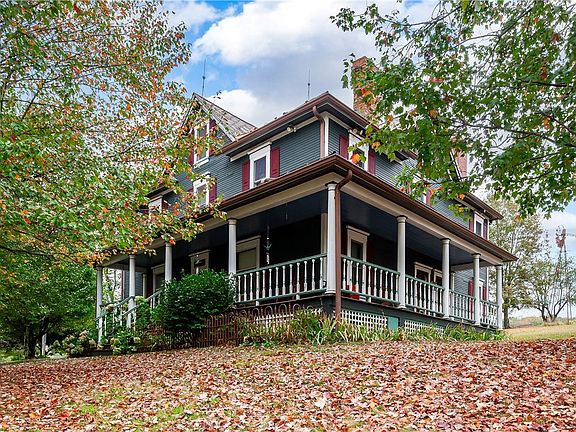 Welcome to this 1904 Turn of the Century Post American Foursquare home with a detached 3 level 40x28 three stall heated garage. The Original 1904 three level 16x20 springhouse is attached to garage. This Five-bedroom 3.5 bath home is a rare opportunity. Enter through the front door with a large living room and sitting room or office on each side with working pocket doors. Huge Eat in Kitchen that goes to a nice sized dining room. Conveniently located first floor laundry and powder room. Most of main floor has oak hardwood flooring. Upstairs are 4 bedrooms and 2 full baths. The Master Bath has its own bathroom with a free standing soaking tub and shower. Theres a generous sized closet off the bedroom for the Master Suite. Up to the third floor bedroom could be a game room or mancave. Full bathroom with a heated whirlpool bathtub. There are four decorative fireplaces. Sit Outside on the large covered mahogany wrapped around porch. 4.6 acres with 2 acres fenced in with a windmill.