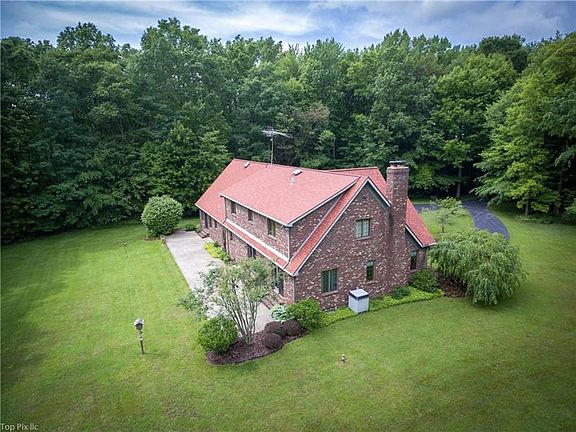 BEAUTIFUL TUDOR STYLE HOME TUCKED AWAY on PRIVATE 10 ACRE PARCEL! Gorgeous grounds and woods surround this Meticulously maintained home.This exterior is brick, stone and cedar. At the center of the home is a Spacious Eat in Kitchen w/ custom oak cabinetry and French Doors to private rear patio. Formal DR w/ French Doors and Lovely bay window, FR w/ WB fireplace, Den, 1st floor office and 1/2 bath. Second floor features Master BR w/ En-suite & Walk in Closet, 2 additional BR's and Bonus Room w/ a 4th Bedroom. Full basement with potential for finishing and includes an additional fireplace. Attached 3 stall garage, PLUS additional storage shed w/ another overhead door.