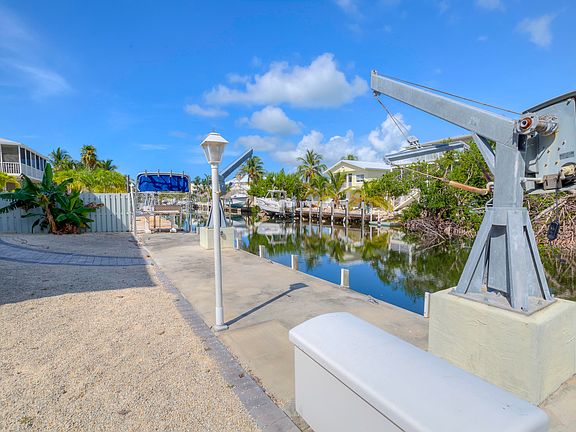 Waterfront canal front home in Plantation Key Colony with generous outdoor patios and interior staircase. 50 ft concrete dock and davits. 2 bedrooms & 2 bathrooms on second floor and 1 bed, 1 bath on first floor. Kitchen features granite and Chef Collection Stainless Steel Samsung Dishwasher and Refrigerator, Duo Oven Range. Bose Surround System and HDTV. CCTV Video Cameras, Nest Thermostat and Ring video doorbell. LG Steam washer and dryer. CBS with metal roof and accordion shutters. Gated and fenced yard. Easy Florida Bay boating access and Atlantic Ocean. Near schools, hospital and shopping in the Village of Islamorada, Florida Keys.