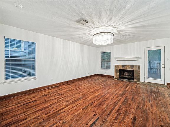 Discover this beautifully updated Lennar townhouse offering low-maintenance living and a warm, welcoming ambiance. The spacious living room features a cozy fireplace and stylish lighting updates perfect for both relaxing and entertaining. Wood flooring flows through the main living areas, while slate or tile accents the wet areas, blending elegance with durability. The light and bright open-concept kitchen includes the refrigerator, with the washer and dryer also staying for added convenience. Upstairs, retreat to the oversized primary suite featuring an updated bath with a luxurious shower head and generous closet space. Step outside to a private, fenced backyard with a deck ideal for morning coffee or evening gatherings backing to greenspace for enhanced privacy and a serene setting. Ideally located near Lone Star College, top-rated schools, medical facilities, and with quick access to I-45, this move-in ready home delivers comfort, style, and a prime location.