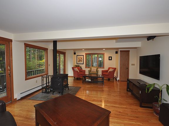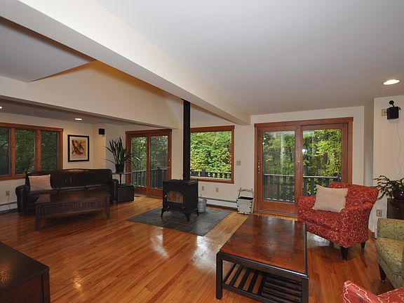 Private and serene, this perfect contemporary home checks every box on today's "must have" list! Ambiance and warmth surround you with a family room that spans the entire south side and offers a wood stove on chilly winter nights. The other fireplaces connect the living room and dining room, providing entertaining space that is just the right size for formal or casual entertaining. Completely renovated and immaculately maintained by the current owners, enjoy the new kitchen with granite counters and stainless appliances, a master suite with private full bath, hardwood floors throughout, 2-car garage, and central air conditioning. Truly experience the outdoors with almost 5 acres and direct access to Flagg Hill and Heath Hen Meadow. Bring your horses, wander off on skis, BBQ on the custom designed bluestone patio, or just play outside in the expansive back yard. Welcome home to 227 Boxboro Road!