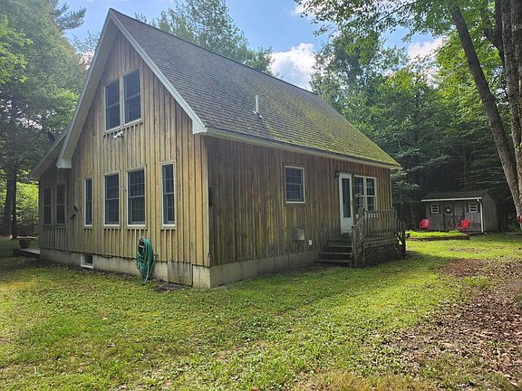 If your looking for privacy then look no more. this home offers 2 bedrooms, 1 full bath, open concept living with a 3 season porch which leads to a nice big deck to watch the wildlife, Has a 1 car garage with a room overhead for a mancave all finished off. Also has a 12x 30 garage for all your toys with overhead doors on each end. comes with bunkhouse. Comes partially furnished. All this on 5.2 acres.