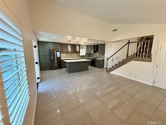 Step inside the open-concept first floor with plenty of natural light. You'll love whipping up your favorite meals in the modern kitchen, complete with a massive island, sleek quartz countertops, and all the cabinet space you could ever need. The stunning black stainless steel smart refrigerator and matching appliances are the perfect finishing touch.