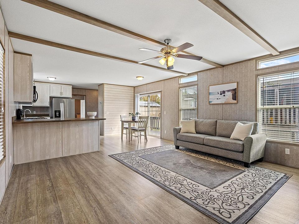 Beautifully Maintained Home in Knollwood Village — Barely Lived In! This single-owner home was manufactured in 2018, but it wasn’t even occupied until 2019 — and half the home has hardly been used! Step inside and you’ll find a bright, open layout designed for both comfort and style. The spacious living room features wood beam accents and a built-in entertainment center with charming shiplap detail, creating a warm and inviting focal point. The kitchen and dining area flow seamlessly together, with a sliding glass door that fills the space with natural light and opens to a second deck — perfect for morning coffee or evening relaxation. The stainless-steel refrigerator, GE washer, and dryer all convey with the sale, saving you thousands right off the bat! Your primary suite is a true retreat, complete with a large soaking tub, separate shower, and large walk-in closet. The home is handicap accessible with a newly installed ramp and open floorplan for easy living. This property is also one of the rare lots grandfathered in with a carport — meaning you’ll enjoy covered parking for two vehicles without the added lot rent newer sites now require. Located in the welcoming Knollwood Village community, residents enjoy two pools, a basketball court, a community center available for private gatherings, and overflow parking for trailers and boats. Background checks for residents help ensure a peaceful and safe neighborhood. Conveniently located near Sherman Town Center, you’re just minutes from everyday conveniences like Target and Home Depot, and local favorites such as The Library Bar & Grill. Where else can you live this comfortably, this affordably, and this close to everything? Don’t miss your chance to call this like-new home yours!