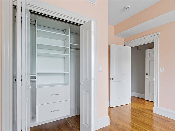 This elegant and modern raised first-floor 3-bedroom, 2-bathroom condo is nestled on a wide Dorchester side street just 0.1 mi from Shawmut Red Line MBTA station. The open concept layout is ideal for entertaining, with the living room and kitchen seamlessly flowing together and providing direct access to an oversized back deck, perfect for al fresco dining or relaxing in a tranquil setting. The kitchen boasts granite countertops and stainless-steel appliances, making it both stylish and functional. All three bedrooms, along with the bathroom and hallway closets, feature California Closets custom buildouts, offering exceptional storage solutions. Wood floors add warmth and elegance, complemented by central air for year-round comfort. Adding a touch of mystery to daily living, a hidden Murphy Door bookshelf leads to your second bathroom. Additional features include private basement storage and a private washer and dryer, enhancing convenience and ease in this exceptional home.