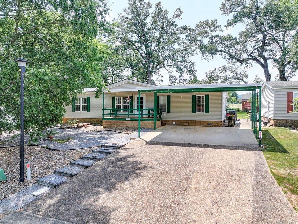 Well-Maintained Modular Home with Modern Upgrades minutes to Lake Hamilton This 3-bedroom, 2-bath modular home offers over 2,000 sq. ft. of comfortable living space with a permanent foundation. Features include luxury vinyl flooring, a natural gas fireplace, spacious eat-in kitchen with abundant storage and pull-out drawers, and a fully enclosed 434 sq. ft. solar-screened back porch. The master suite has dual closets plus extra storage, a separate mini-split AC for added comfort, and a full bath. Recent updates include a 2023 roof, AC unit, and heat pump. Exterior highlights include Chattahoochee River rock flooring on both porches, a fenced backyard, motion detector lights, double carport, and ramp access. Located in a 55+ community with low POA dues, saltwater pool, clubhouse, recreation room, and year-round social activities.