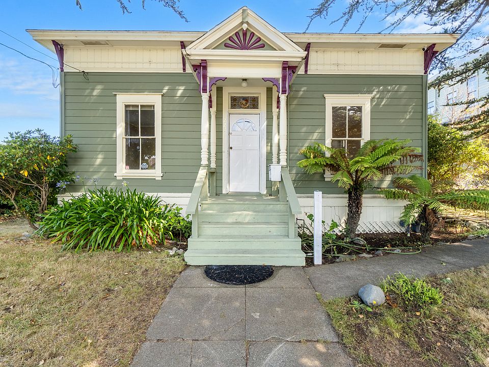 Charming Victorian on quiet Clark Street in the heart of town. This 2-bedroom, 1-bath home offers bright living spaces, a window-lined dining room, and a vintage clawfoot tub. The kitchen retains its classic character, complemented by a full-size laundry room, pantry, and a new hot water heater. Enjoy a fully fenced yard with alley access, plus a garage and storage shed for added convenience. A perfect blend of historic charm and everyday function!