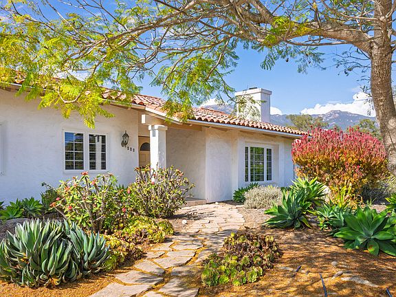 Set along a peaceful cul-de-sac in Santa Barbara's desirable Upper East, just moments from the historic Mission, this Spanish-style residence embodies the charm of Mediterranean architecture combined with the comfort and ease of single-level living. As you arrive, large agave plants frame the approach, setting the tone for the residence's timeless style. Inside, graceful archways flow throughout the home, lending an air of romance and classic design. Four bedrooms and two baths provide comfort and versatility, while the beautifully updated kitchen with crisp white cabinetry opens toward the backyard, capturing views of fruit trees and lush greenery. From the main living areas, the outdoors beckon. A covered patio creates the perfect stage for al fresco dining and poolside gatherings, with mountain views forming a breathtaking backdrop. Mature fruit trees dot the grounds, offering the joy of seasonal harvests, while the landscaped backyard and pool create a serene private retreat. Blending classic Spanish character with modern comforts, this residence embraces its location in one of the city's most beloved neighborhoods, where tree-lined streets, timeless architecture, and proximity to the Mission and downtown make every day feel distinctly Santa Barbara.