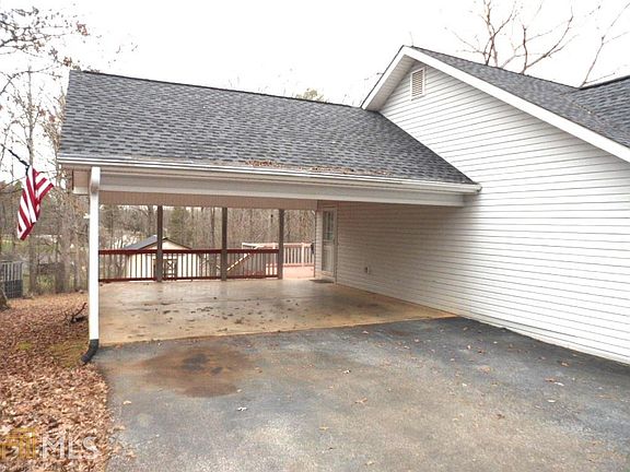 Copper Springs is a little Gem of a home located in a small community with only 2 lanes and this property is situated in the culdesac so the largest share of your land is in the backyard. Welcome Home. This floor plan is suitable for those setting up house keeping or others right sizing in the golden years. Low maintenance front yard and gentle back yard afford time for better things than yard work. A level driveway with parking pad and covered parking in the roomy 2-car, carport with one step entry into kitchen. This Friends Door is where most of your family and friends with knock for entry. Come inside to the spacious kitchen/dining space where meals, cookies and memories will be made. Roomy counter space, cupboards and all appliances are provided. The laundry is tucked into the corner of this space and appears to be a pantry. Open sight lines from the kitchen sink over the counter bar with seating, allow even an amateur chef to be a part of the activities as the day ends. Vaulted living room with wall of windows offers space for over-sized furniture and the decorative gas fireplace remains for instant ambiance.(not connected, no gas tank on premise.) Entry foyer opens to front porch that overlooks a party platform with water feature. Three bedrooms and two baths complete the interior. The guests suites have new carpet while the main living areas of the home and the owners suite feature real hardwood flooring. Tile is found in each bath. Owners suite is tucked on the back side of the home with a barn door feature on the en suite bath. Walk-in closet a nice luxury. Roof is only one year old. HEMC high-speed interest is streaming through the lines so working from home or staying home to binge watch your favorite feature is just a click away. Get outside and enjoy hotdogs over the fire pit or enjoy hobbies in the out building with power. The framing for a chicken coop, clubhouse or garden shed are underway - limited only by your imagination. Literally minutes to 365/985 for commuting for careers, one exit south for shopping or dining, all the North Georgia outdoor activities of hiking, canoeing, kayaking, ax throwing or trophy trout fishing are within 30 minutes of your front door. HURRY this commodity goes fast in the current market.