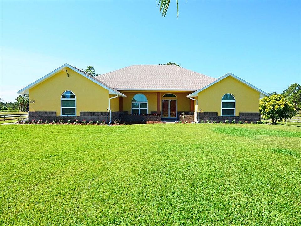 Here is your chance to enchant your senses with this ranch style Palm Bay home. Nestled in the heart of the equestrian neighborhood of Deer Run you can have your very own ranch on a sprawling 5.36 acres that encompasses 2 lots. Live on the property, where you can have horses! Just what you always wanted...right?? This amazing four bedroom, two & one half bath home is just dying to be yours. Laurel Pritchett was the architect and designer of a total remodel of the house in 2013. All the extra features were added for your comfort and enjoyment, featuring: Open floor plan, Tall ceilings, Split floor plan, Extra large master bathroom, Gas fireplace. Quartz countertops. Custom trim work, Beautiful solid maple wood cabinetry with soft-close drawers, Wood floors and extra large closets throughout. Large open kitchen, Frameless shower doors, Custom built fireplace mantel, Under and over-counter lighting. Breathtaking wide open spaces and views of trees with Lots of wildlife: deer, turkeys and plenty more. Then you have the spectacular 5 stall barn with full electric. Beautiful views of the outside from all angles of the house. Featuring Fenced in yard, Large 12 gates, Extra wide driveway with extra parking, Trane AC, Whole house generator. Barbados Cherry and Mango trees, Lots of shady Palm and Pine trees in back. Hurricane impact windows provide quiet inside the house. Sprinkler system with additional zones added and upgraded to commercial Rainbird control panel, Kinetico water softener; dual tank system. Two reverse osmosis systems; one in kitchen and one in laundry room. Easy access to I95, via John Young Parkway; Soon to be, Emerald Lakes will have Publix, hospital, gas station and much more. Many more features not mentioned. You must see to appreciate. If you prefer just the house to be situated on an estimated 2.6 acres, the seller will consider subdividing the additional pasture parcel out of the equation at a reduced negotiated price.