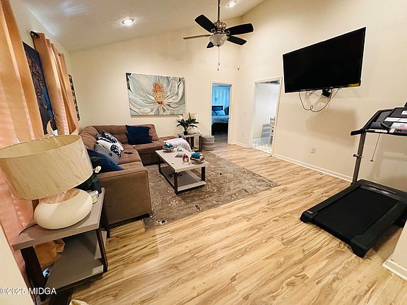 It features three bedrooms and two bathrooms plus a family room. It can also be pictured as 2 living rooms.