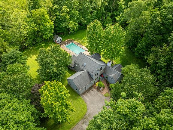 Serene escape in the Ligonier Valley! This owner built home nestled on over 5 acres offers an inviting blend of seclusion and wooded spaces. Minutes from Ligonier Diamond, Laurel Valley Golf Club and in the Heart of Hunt Country. The open floor plan includes both formal dining and living areas, spacious kitchen is highlighted by abundant natural light. The family room seamlessly transitions into a delightful three-season room. Primary Suite is conveniently located on the main level and w wood burning fireplace. 3 additional bedrooms on the upper level along with a full bath. The back patio overlooks the pool area, Ensuring the pool becomes the centerpiece of your outdoor oasis, it will need some TLC before being summer ready, complete w/ an equipment house for added convenience. Located adjacent to 7,600+ acres of private land, Offering a tranquil retreat while still being close to all the amenities. Located on a Private Drive that requires advance notice to view. Welcome Home!