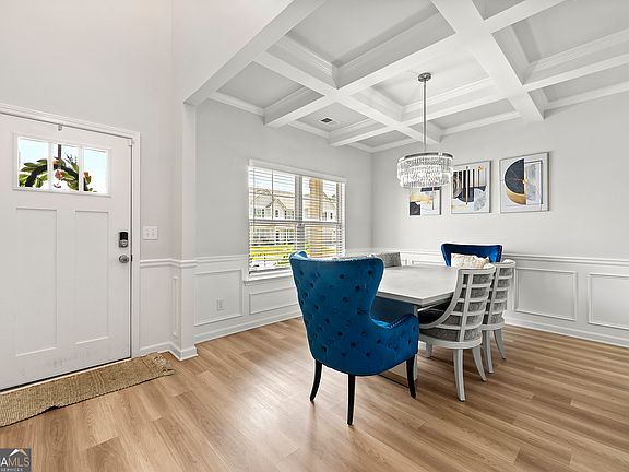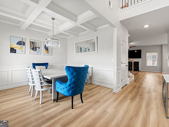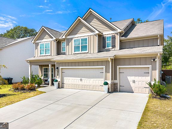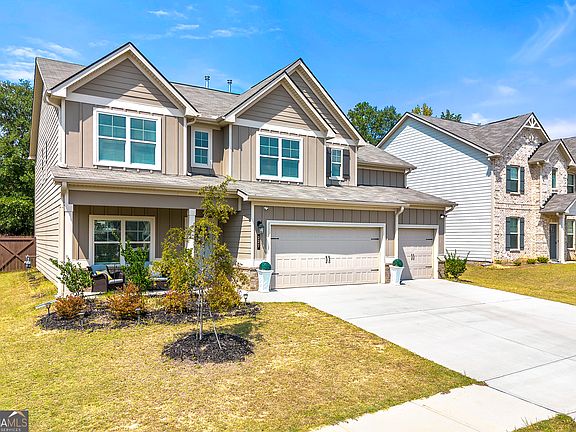 There is a certain kind of home that truly has it all, and this is one of them. Located in the sought after Eleanor subdivision, this newly built 2023 home blends modern design with thoughtful details throughout. Upstairs, you will find a spacious primary suite along with three generous secondary bedrooms, while the main level offers the convenience of an additional bedroom and full bath. With a rare three car garage, soaring nine foot ceilings, and a formal dining room with a coffered ceiling, the home is designed for both elegance and everyday living. The kitchen stands out with quartz countertops, a tile backsplash, a central island, and stainless steel appliances, all overlooking the open concept family room. Luxury vinyl plank flooring flows throughout the main living areas, and a direct vent fireplace with a decorative mantle creates a warm focal point. Details matter here. Metal spindles with wooden handrails, brushed nickel hardware, ceiling fans in the primary and family rooms, secondary bedrooms pre wired for ceiling fans, two inch faux blinds, and WiFi enabled garage door openers add both style and convenience. The driveway is illuminated with motion sensing flood lights for added peace of mind. This home has been thoughtfully designed, beautifully finished, and is move in ready. Schedule your private showing today and experience why this Eleanor subdivision gem is the perfect place to call home. Great Lender Incentives with Jerome Jackson with Southeast Mortgage.