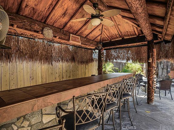 PRICED TO SELL!! This home is a dream for entertaining and relaxation! With 4 bedrooms, 2 baths, a wood burning fireplace, and a spacious bonus room featuring a built-in bar, it's perfect for hosting gatherings and parties. Bonus room is over 400 SF, not included in the original square footage. The backyard is like a tropical paradise with its tiki oasis setup, complete with a palapa over the spa and another over the full-size custom-built bar area. The built-in gas fire pit adds to the ambiance, creating a cozy atmosphere for outdoor gatherings. It's a fantastic opportunity for someone looking to enjoy both indoor comfort and outdoor fun!